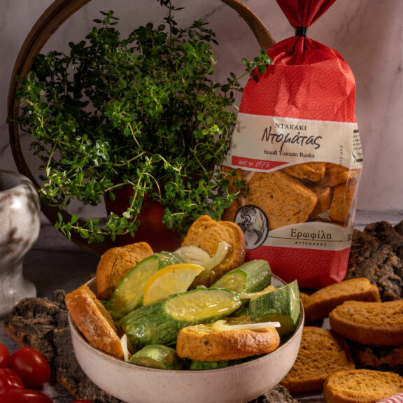 Παξιμαδακια ριγανης με ντοματα και γαυρο μαρινατο